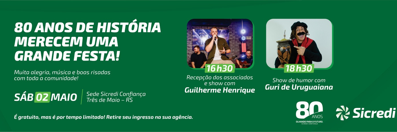 Associados da Sicredi Confiança vão ganhar show musical e de humor, na Sede em Três de Maio